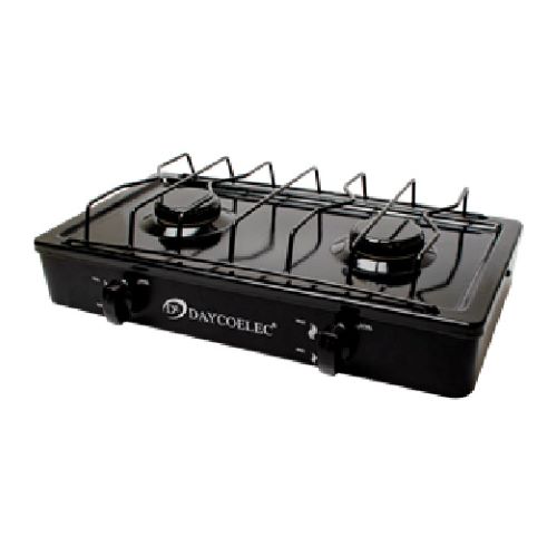 La estufa de gas modelo 2Q de la marca Daycoelec cuenta con perillas con válvula de seguridad, con pintura electrostática, cubierta superior de acero inoxidable, parrilla desmontable porcelanizada, es de encendido manual y con 2 quemadores de gas.